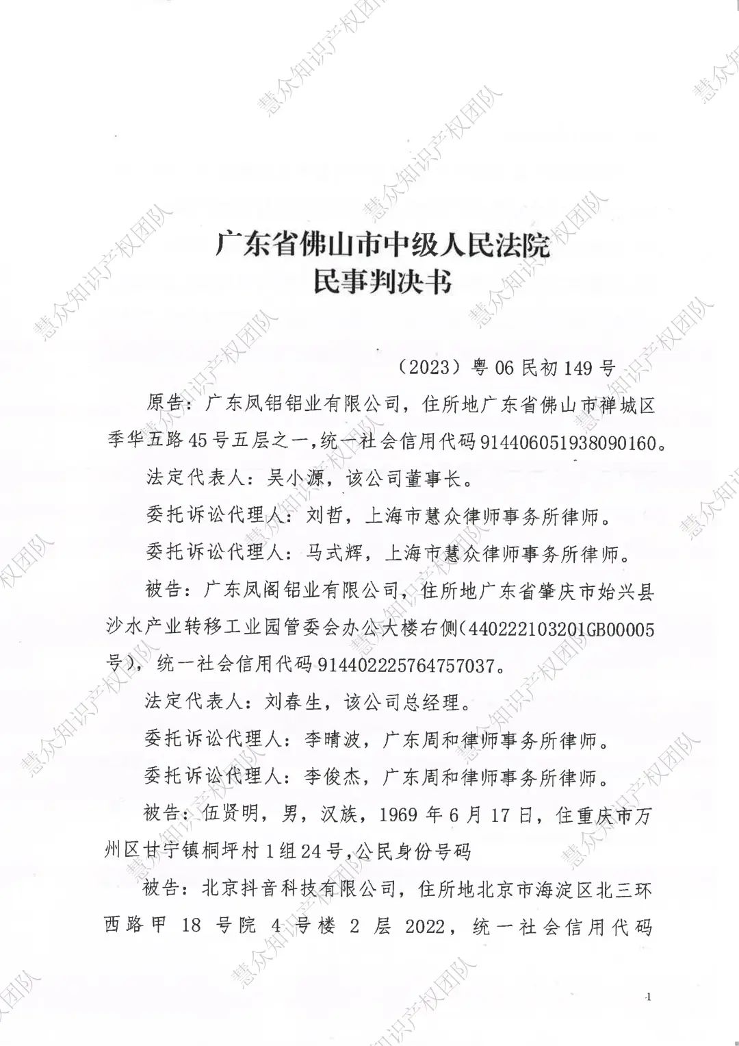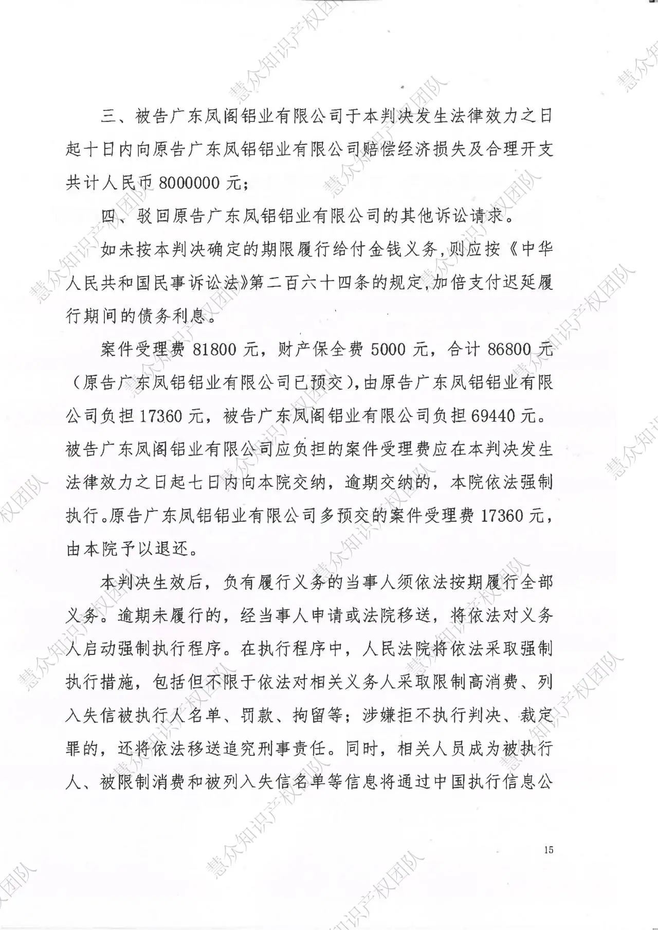 金华判赔800万!辉知队代理“凤铝”商标维权案胜诉